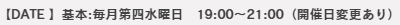 日時 | 毎週月曜日(又は金曜日)19:00~21:00 |